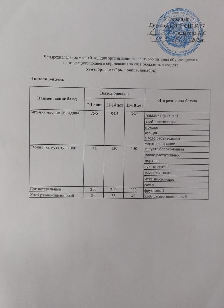 19 сентябрь 2022 0 1 2 3 4 5 Тағамдар мәзірі. 4 апта 1 күн (19.09.2022). Меню блюд. 4 неделя 1 день (19.09.2022) Осы беттің QR-коды:QR-код этой страницы: