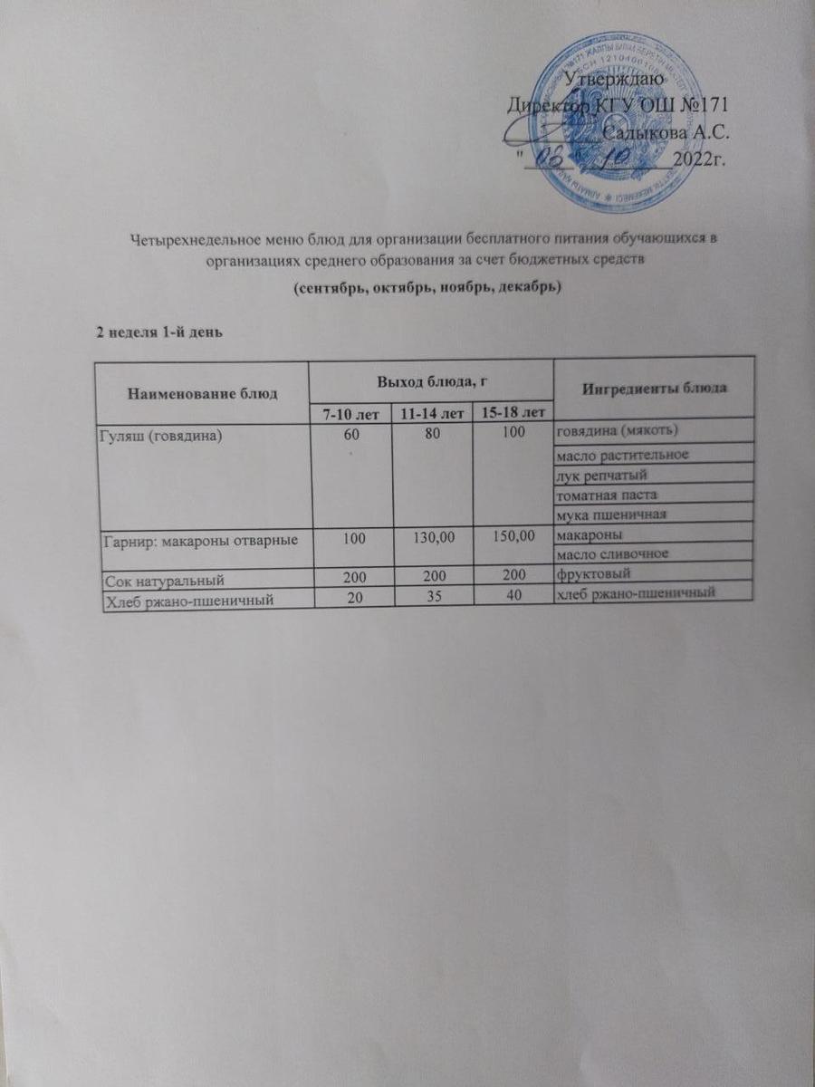 03 октябрь 2022 0 1 2 3 4 5 Тағамдар мәзірі. 2 апта 1 күн (03.10.2022). Меню блюд. 2 неделя 1 день (03.10.2022) Осы беттің QR-коды:QR-код этой страницы: