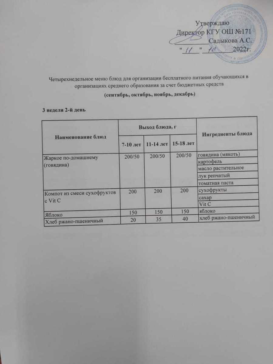 11 октябрь 2022 0 1 2 3 4 5 Тағамдар мәзірі. 3 апта 2 күн (11.10.2022). Меню блюд. 3 неделя 2 день (11.10.2022) Осы беттің QR-коды:QR-код этой страницы: