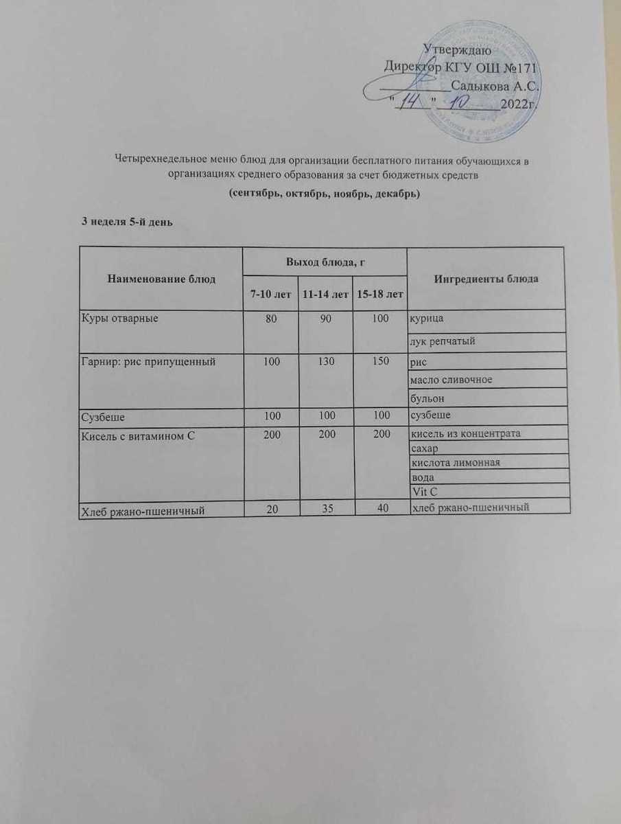 14 октябрь 2022 0 1 2 3 4 5 Тағамдар мәзірі. 3 апта 5 күн (14.10.2022). Меню блюд. 3 неделя 5 день (14.10.2022) Осы беттің QR-коды:QR-код этой страницы:
