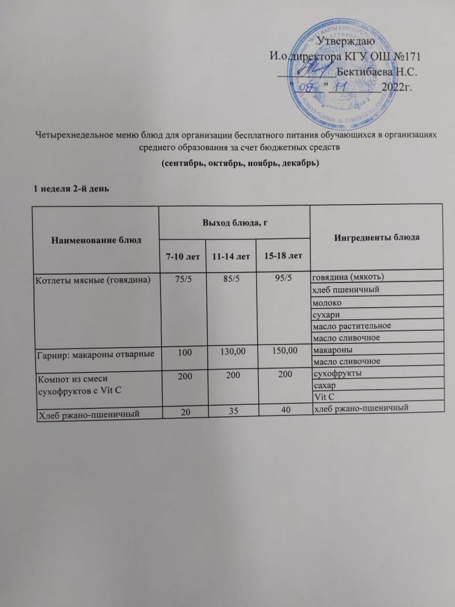 08 ноябрь 2022 0 1 2 3 4 5 Тағамдар мәзірі. 1 апта 2 күн (08.11.2022). Меню блюд. 1 неделя 2 день (08.11.2022) Осы беттің QR-коды:QR-код этой страницы: