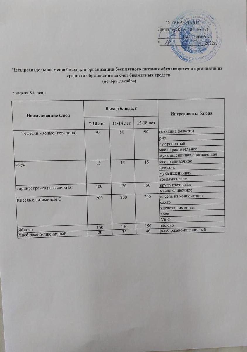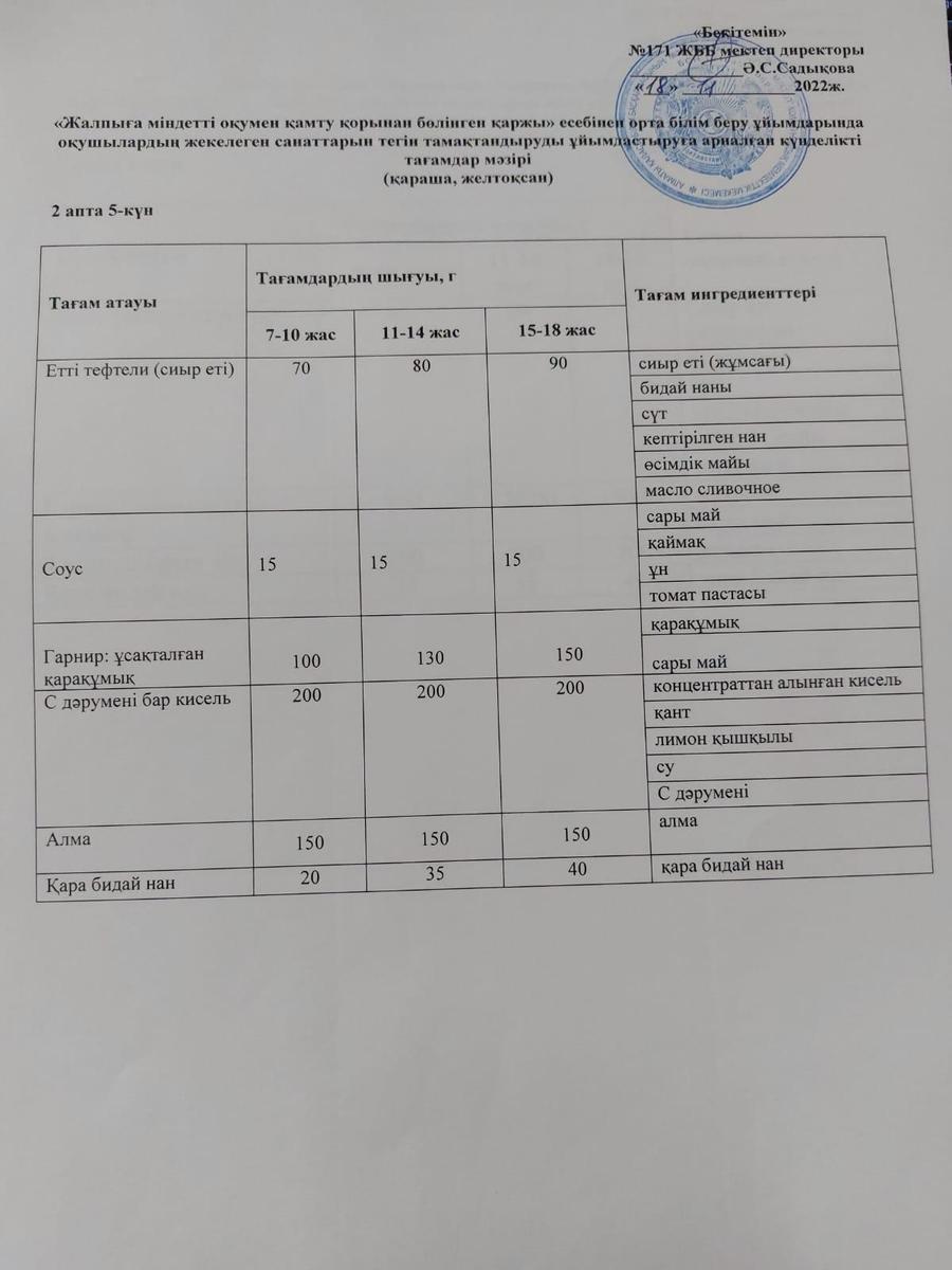 18 ноябрь 2022 0 1 2 3 4 5 Тағамдар мәзірі. 2 апта 5 күн (18.11.2022). Меню блюд. 2 неделя 5 день (18.11.2022) Осы беттің QR-коды:QR-код этой страницы: