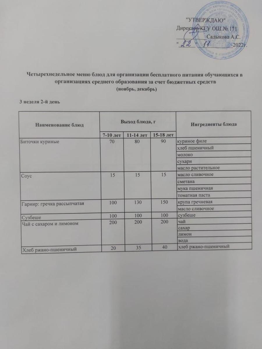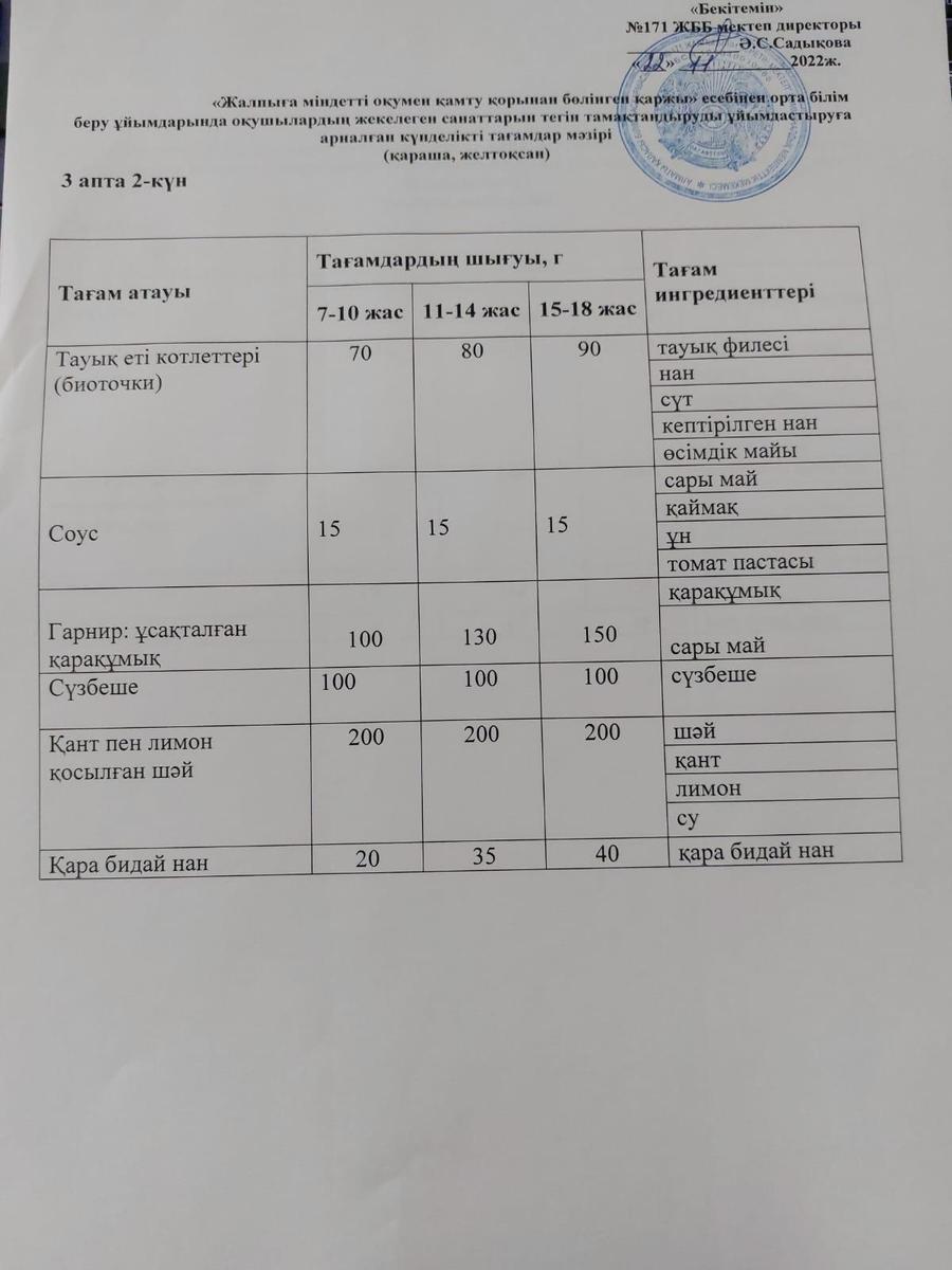 22 ноябрь 2022 0 1 2 3 4 5 Тағамдар мәзірі. 3 апта 2 күн (22.11.2022). Меню блюд. 3 неделя 2 день (22.11.2022) Осы беттің QR-коды:QR-код этой страницы: