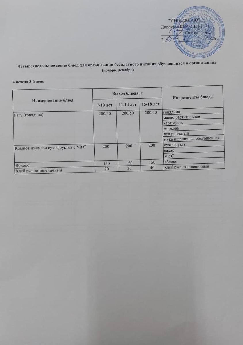 30 ноябрь 2022 0 1 2 3 4 5 Тағамдар мәзірі. 4 апта 3 күн (30.11.2022). Меню блюд. 4 неделя 3 день (30.11.2022) Осы беттің QR-коды:QR-код этой страницы: