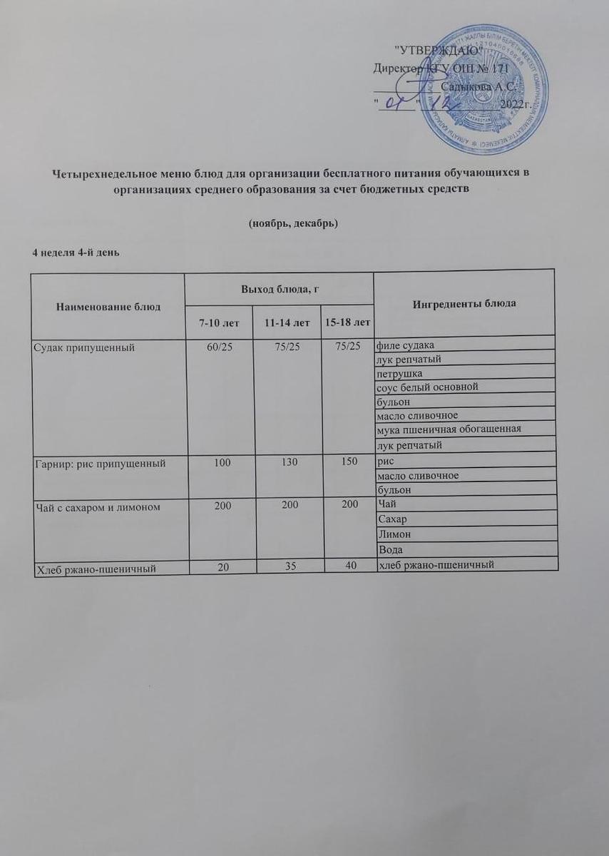 01 декабрь 2022 0 1 2 3 4 5 Тағамдар мәзірі. 4 апта 4 күн (01.12.2022). Меню блюд. 4 неделя 4 день (01.12.2022) Осы беттің QR-коды:QR-код этой страницы:
