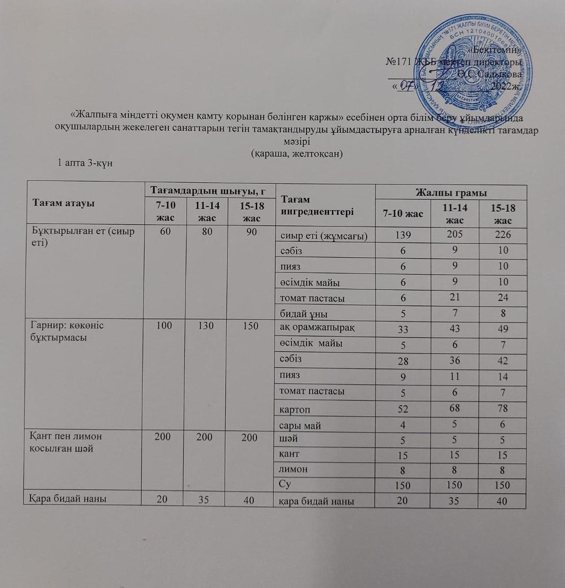 07 декабрь 2022 0 1 2 3 4 5 Тағамдар мәзірі. 1 апта 3 күн (07.12.2022). Меню блюд. 1 неделя 3 день (07.12.2022) Осы беттің QR-коды:QR-код этой страницы: