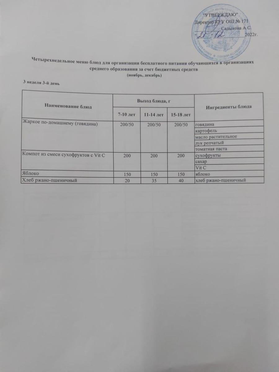 21 декабрь 2022 0 1 2 3 4 5 Тағамдар мәзірі. 3 апта 3 күн (21.12.2022). Меню блюд. 3 неделя 3 день (21.12.2022) Осы беттің QR-коды:QR-код этой страницы: