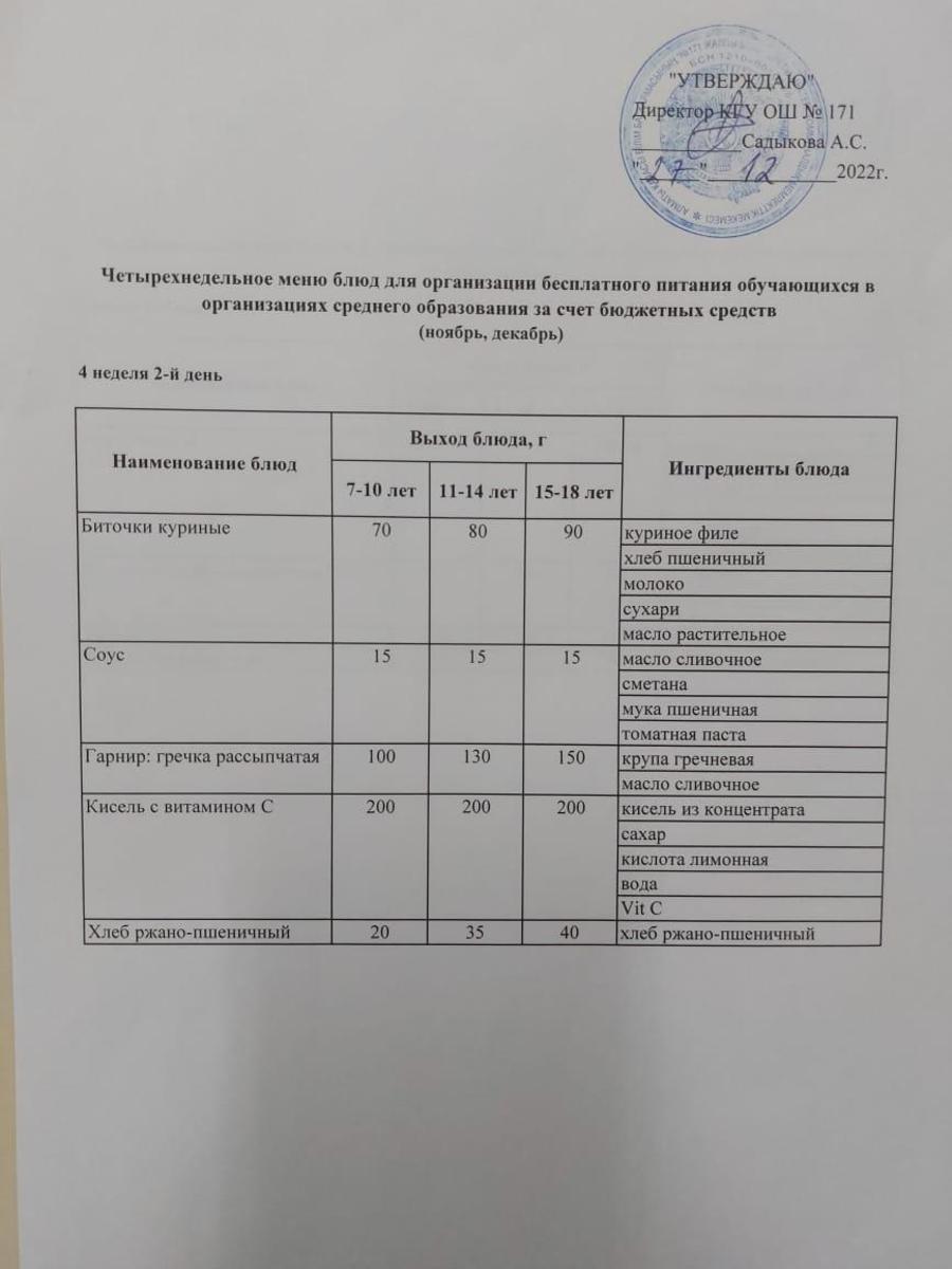 27 декабрь 2022 0 1 2 3 4 5 Тағамдар мәзірі. 4 апта 2 күн (27.12.2022). Меню блюд. 4 неделя 2 день (27.12.2022) Осы беттің QR-коды:QR-код этой страницы: