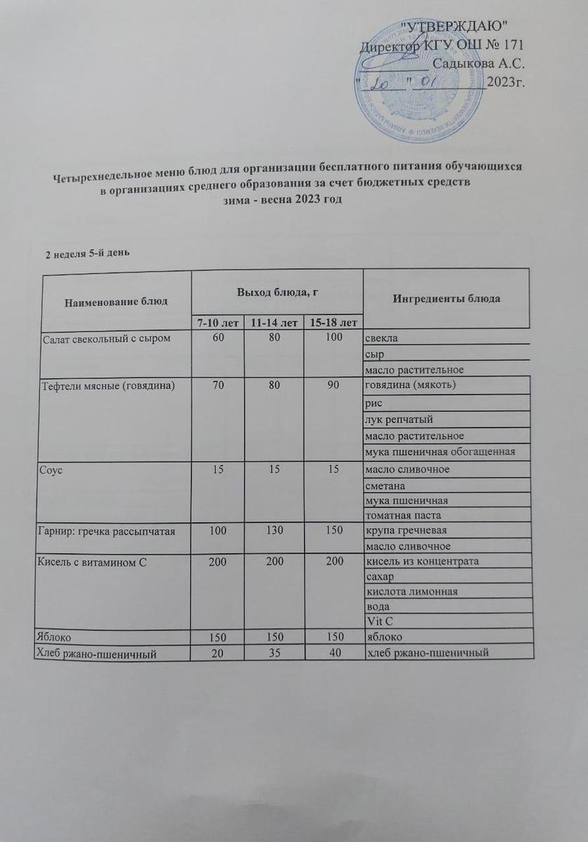 20 январь 2023 0 1 2 3 4 5 Тағамдар мәзірі. 2 апта 5 күн (20.01.2023). Меню блюд. 2 неделя 5 день (20.01.2023) Осы беттің QR-коды:QR-код этой страницы: