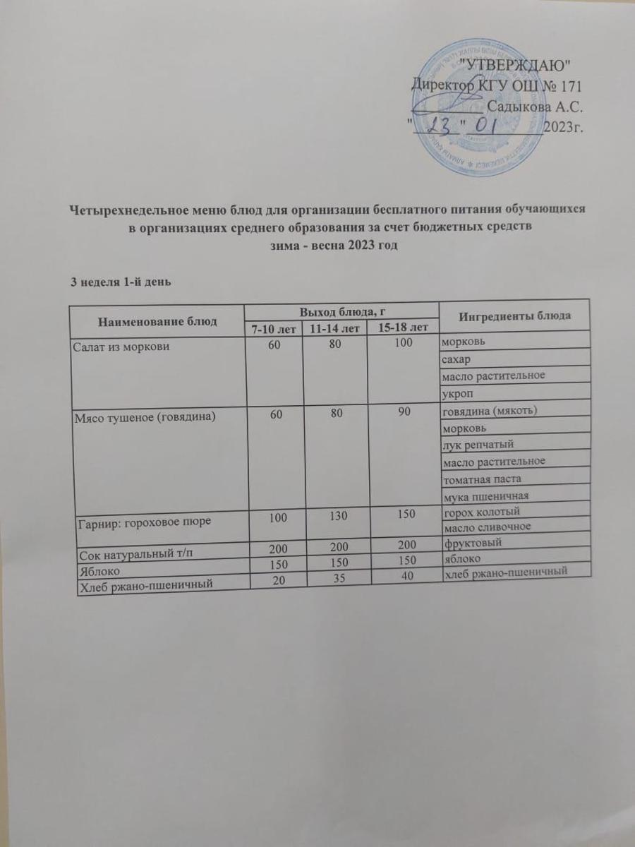23 январь 2023 0 1 2 3 4 5 Тағамдар мәзірі. 3 апта 1 күн (23.01.2023). Меню блюд. 3 неделя 1 день (23.01.2023) Осы беттің QR-коды:QR-код этой страницы: