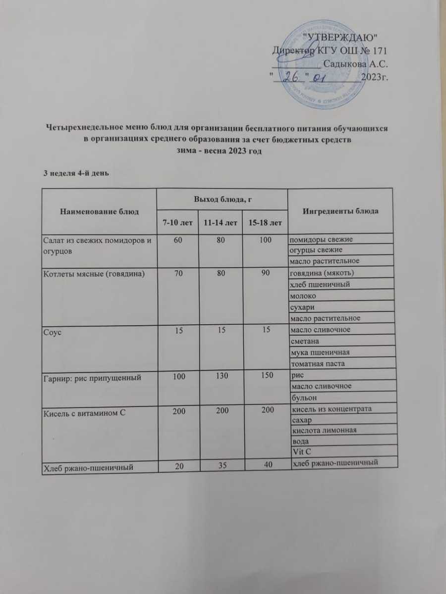 26 январь 2023 0 1 2 3 4 5 Тағамдар мәзірі. 3 апта 4 күн (26.01.2023). Меню блюд. 3 неделя 4 день (26.01.2023) Осы беттің QR-коды:QR-код этой страницы: