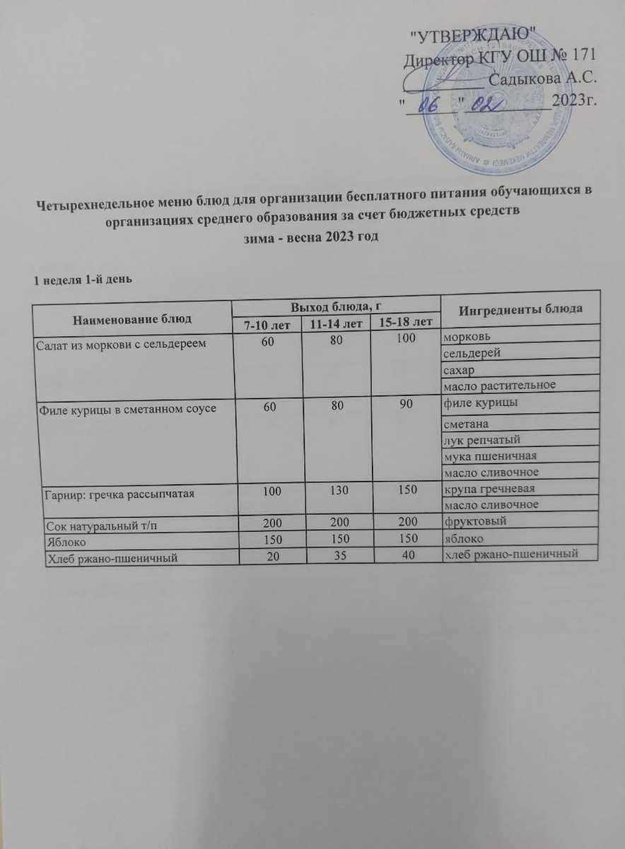 06 февраль 2023 0 1 2 3 4 5 Тағамдар мәзірі. 1 апта 1 күн (06.02.2023). Меню блюд. 1 неделя 1 день (06.02.2023) Осы беттің QR-коды:QR-код этой страницы: