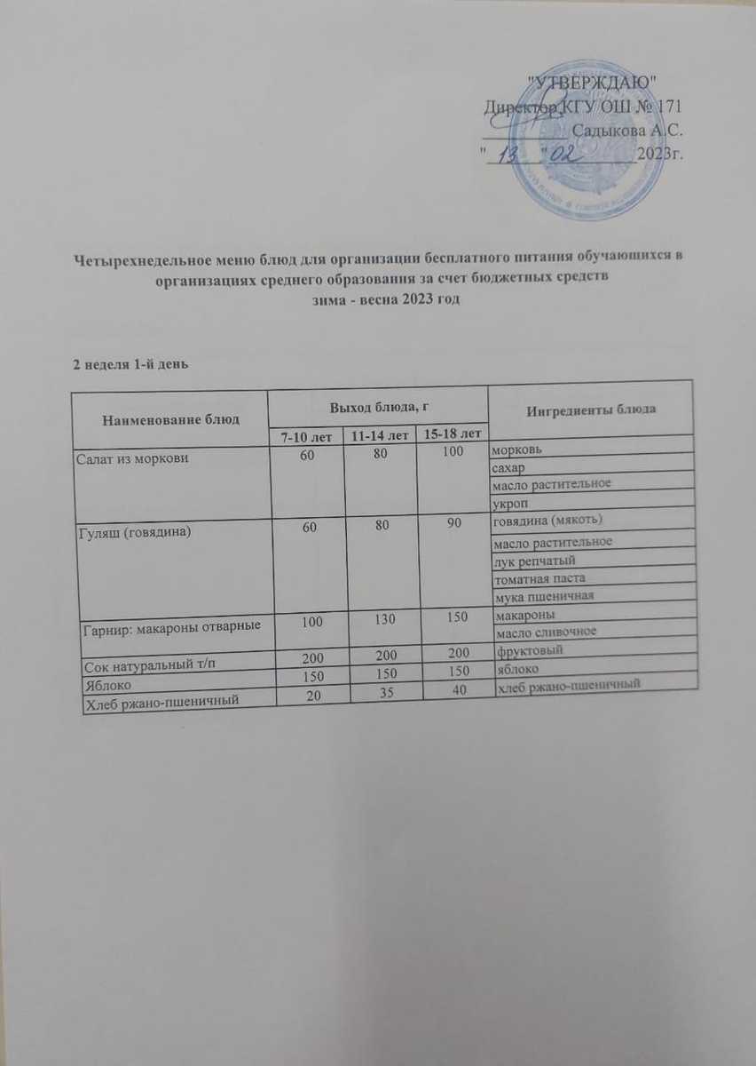 13 февраль 2023 0 1 2 3 4 5 Тағамдар мәзірі. 2 апта 1 күн (13.02.2023). Меню блюд. 2 неделя 1 день (13.02.2023) Осы беттің QR-коды:QR-код этой страницы: