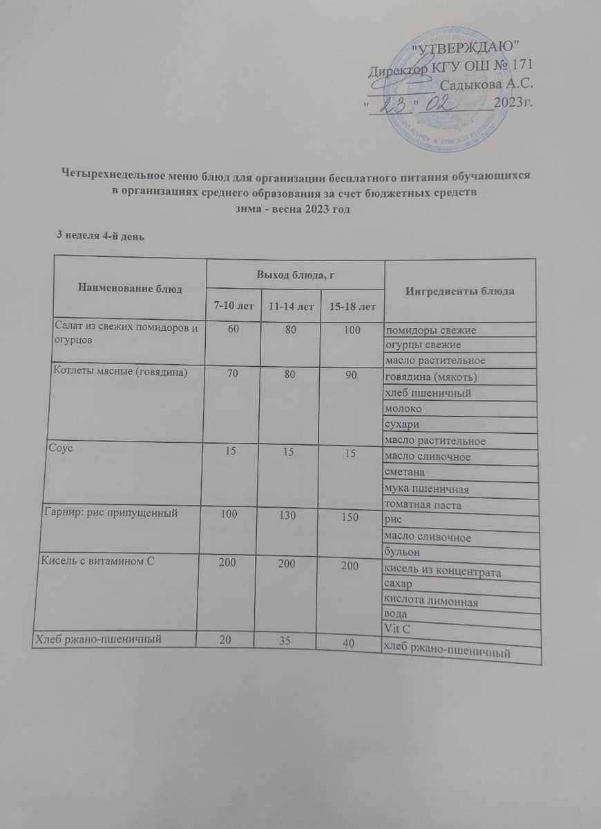 23 февраль 2023 0 1 2 3 4 5 Тағамдар мәзірі. 3 апта 4 күн (23.02.2023). Меню блюд. 3 неделя 4 день (23.02.2023) Осы беттің QR-коды:QR-код этой страницы: