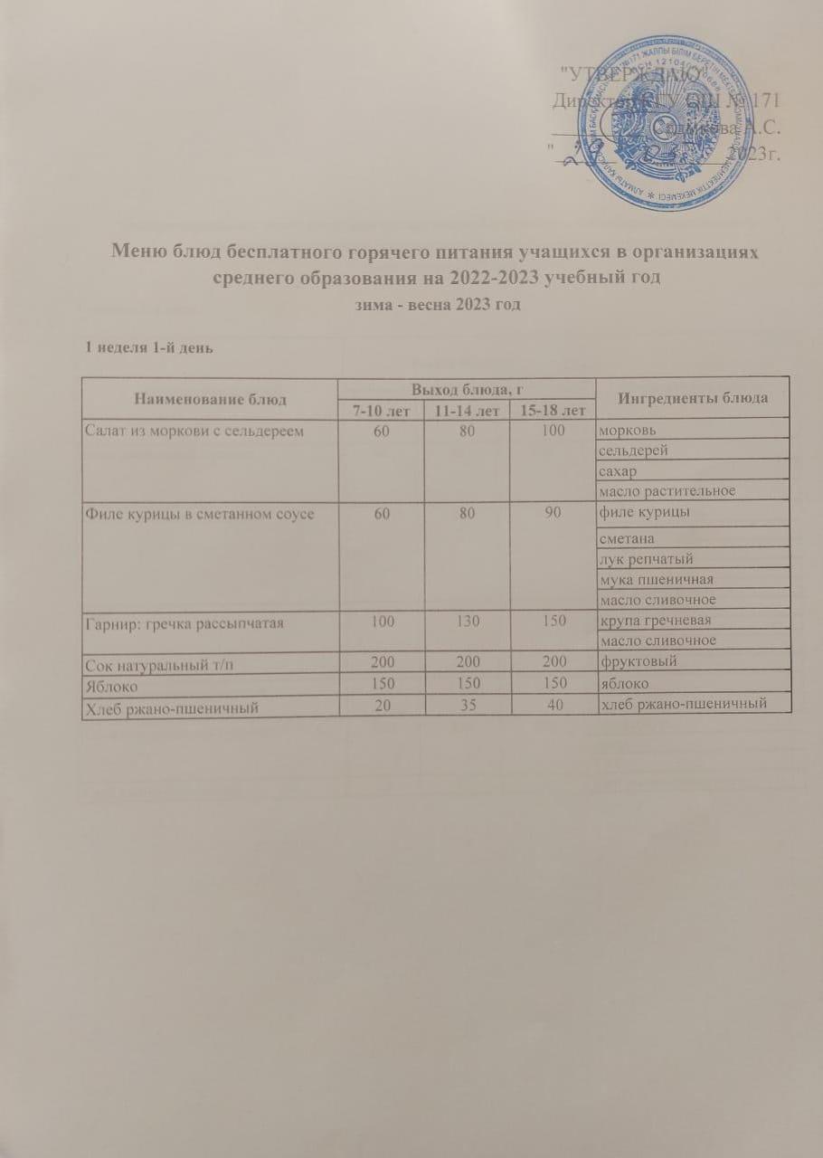29 май 2023 0 1 2 3 4 5 Тағамдар мәзірі. 1 апта 1 күн (29.05.2023). Меню блюд. 1 неделя 1 день (21.05.2023) Осы беттің QR-коды:QR-код этой страницы: