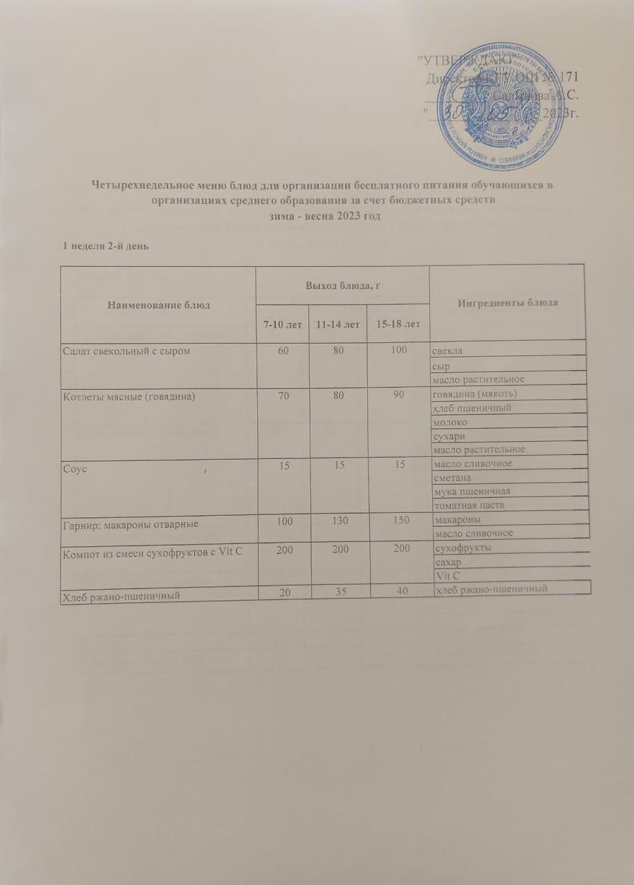 30 май 2023 0 1 2 3 4 5 Тағамдар мәзірі. 1 апта 2 күн (30.05.2023). Меню блюд. 1 неделя 2 день (30.05.2023) Осы беттің QR-коды:QR-код этой страницы: