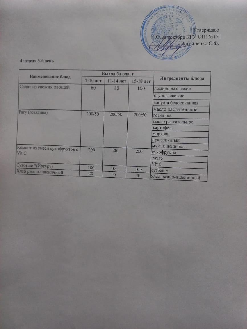 Тағамдар мәзірі. 1 апта 5 күн (10.02.2023). Меню блюд. 1 неделя 5 день (10.02.2023)