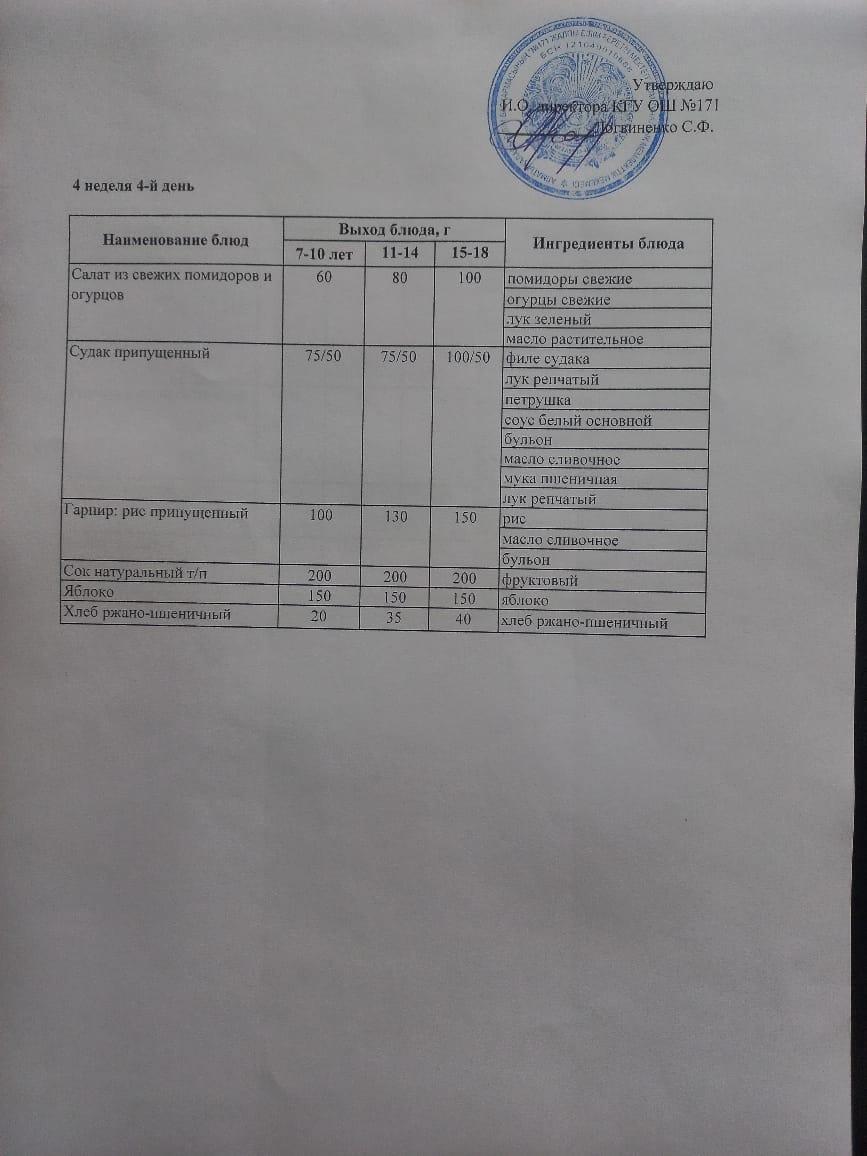Тағамдар мәзірі. 1 апта 5 күн (02.09.2022). Меню блюд. 1 неделя 5 день (02.09.2022)