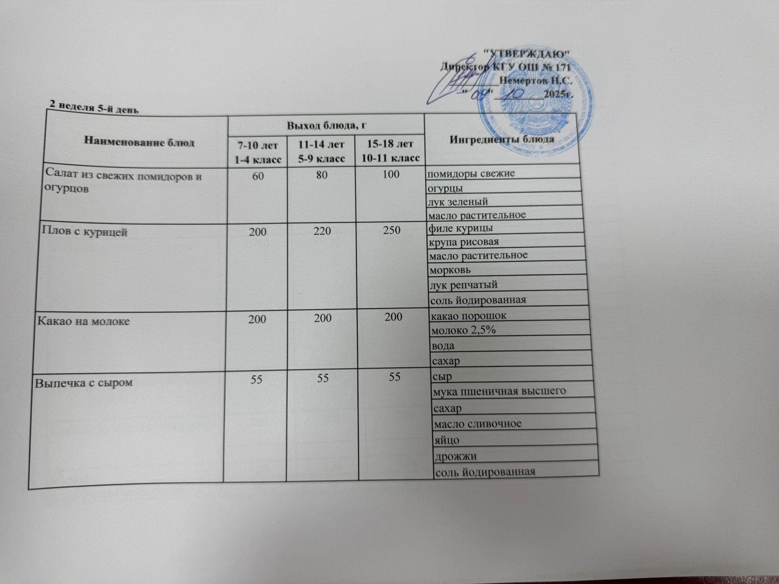 10 октябрь 2025 0 1 2 3 4 5 Ас мәзірі 2 апта 5 күн /Меню 2 неделя 5 день Осы беттің QR-коды:QR-код этой страницы: