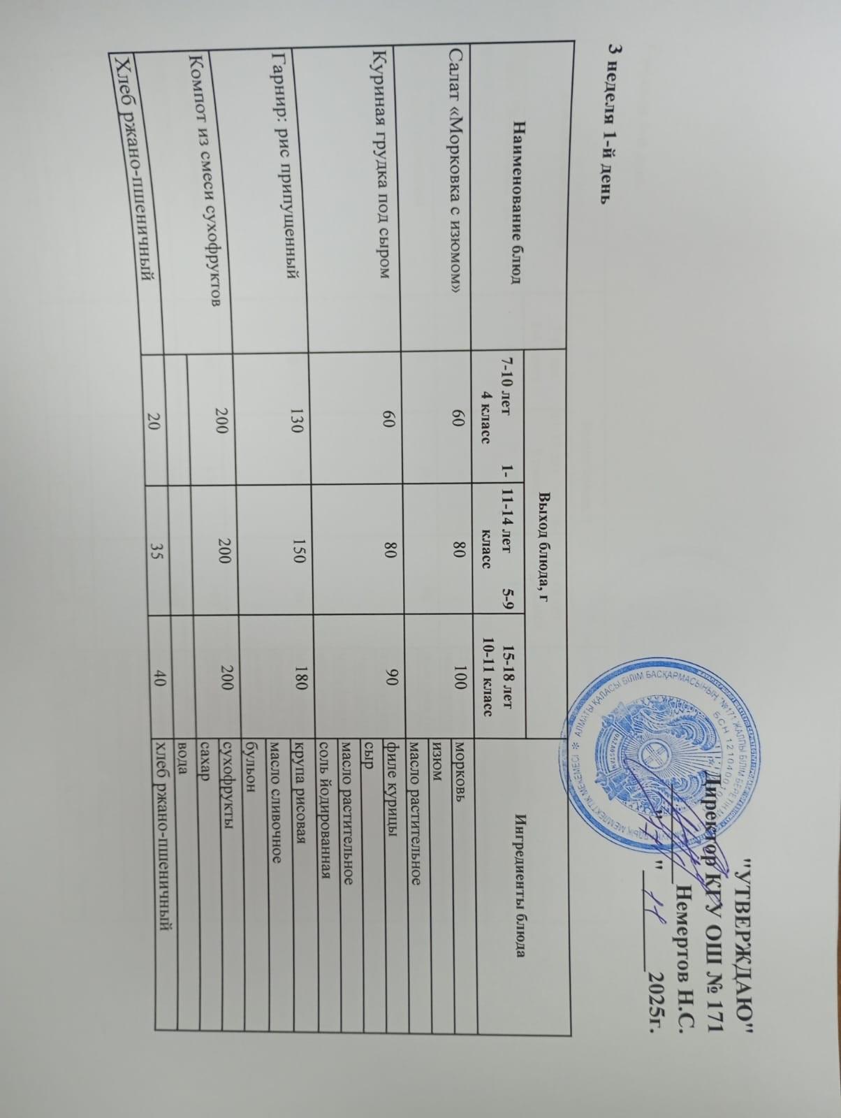 17 ноябрь 2025 0 1 2 3 4 5 Ас мәзірі 3-ші апта 1 -ші кун/ Меню 3 неделя 1 день Осы беттің QR-коды:QR-код этой страницы: