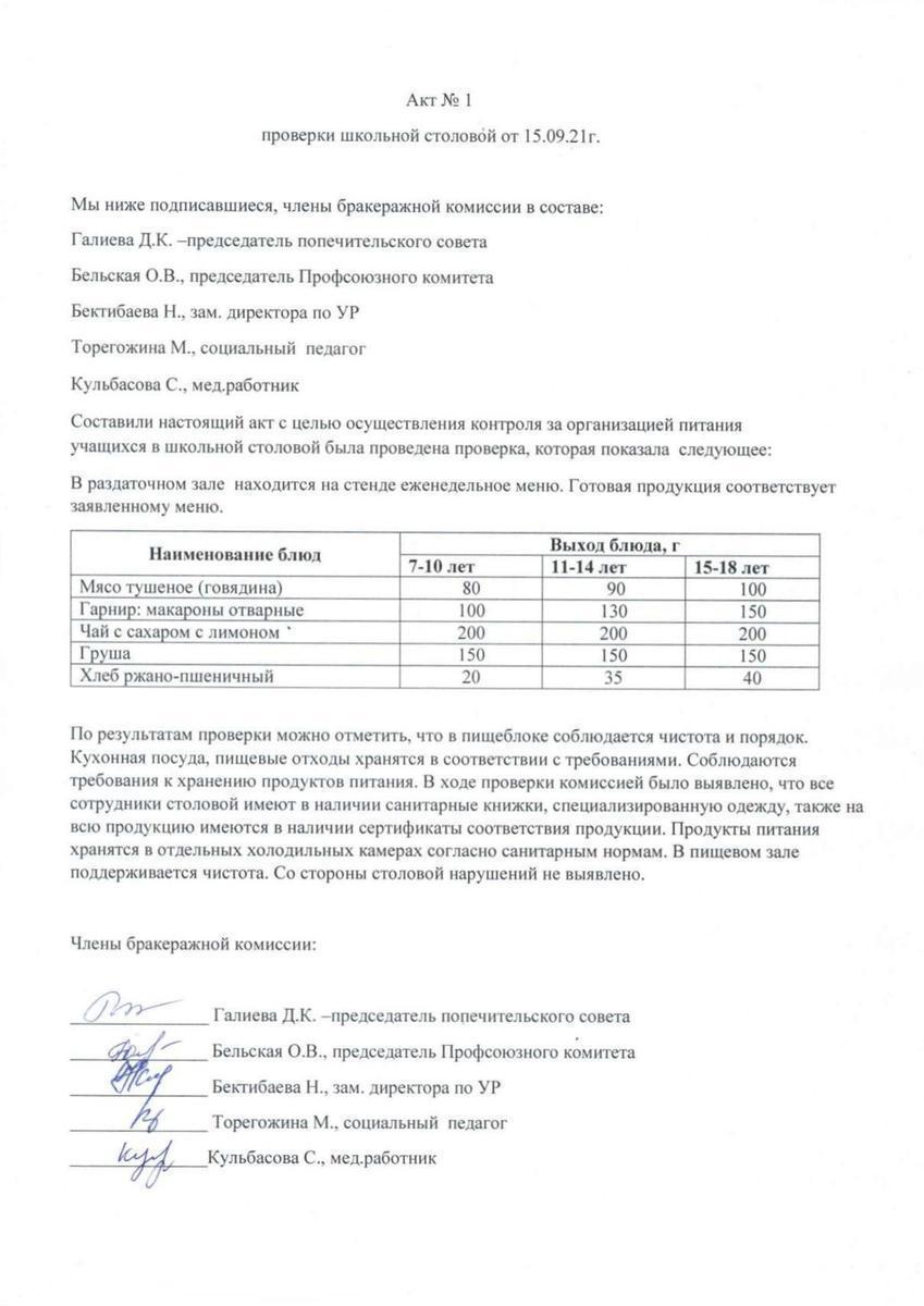 15 сентябрь 2021 0 1 2 3 4 5 Акт №1 проверки школьной столовой от 15.09.2021 г. Осы беттің QR-коды:QR-код этой страницы: