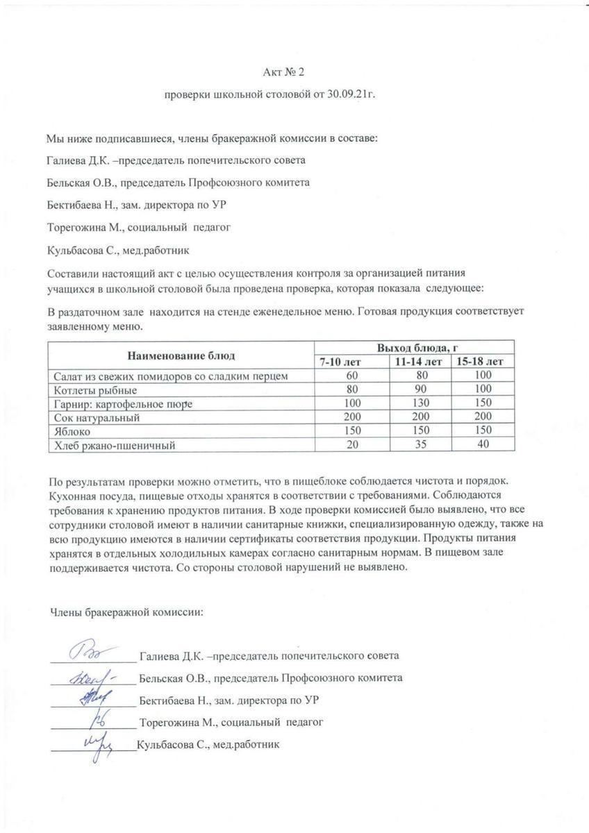 30 сентябрь 2021 0 1 2 3 4 5 Акт №2 проверки школьной столовой от 30.09.2021 г. Осы беттің QR-коды:QR-код этой страницы:
