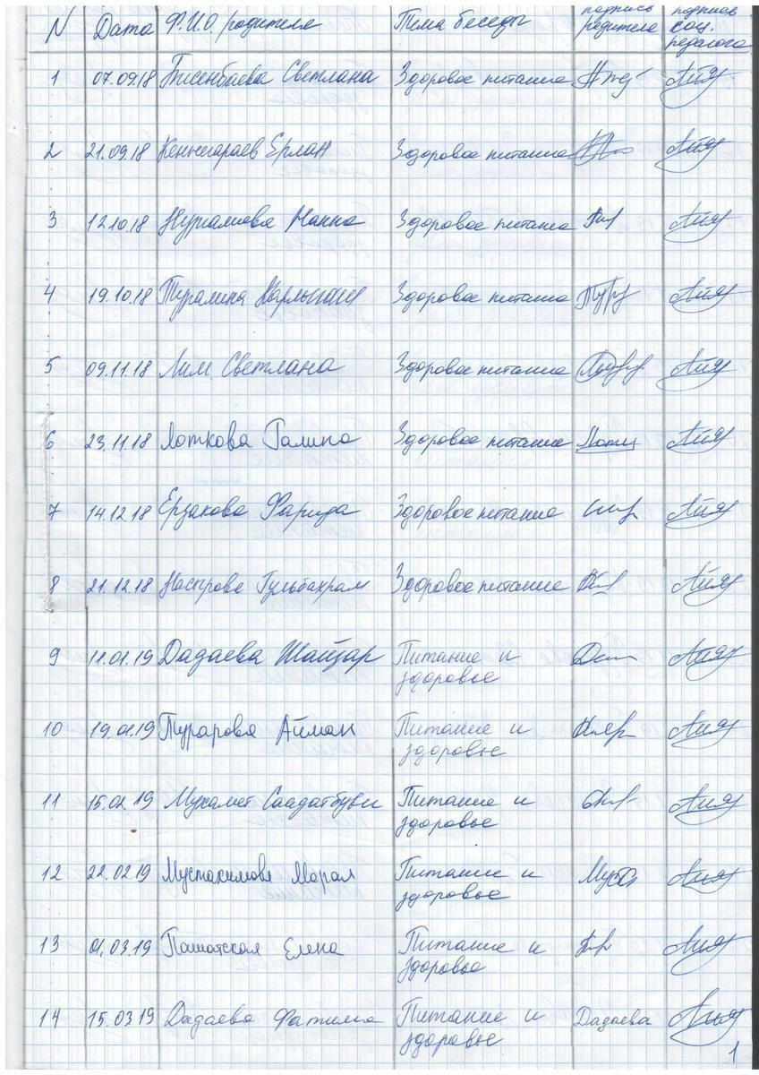 20 март 2019 0 1 2 3 4 5 Журнал бесед с родителями по вопросам здорового питания. 2018-2019 уч.год Осы беттің QR-коды:QR-код этой страницы: