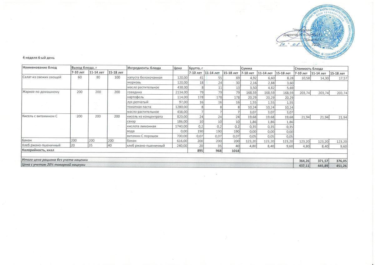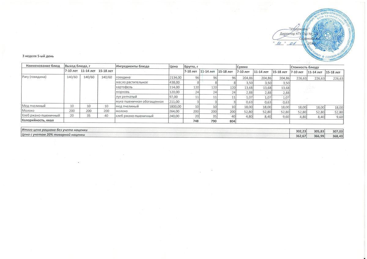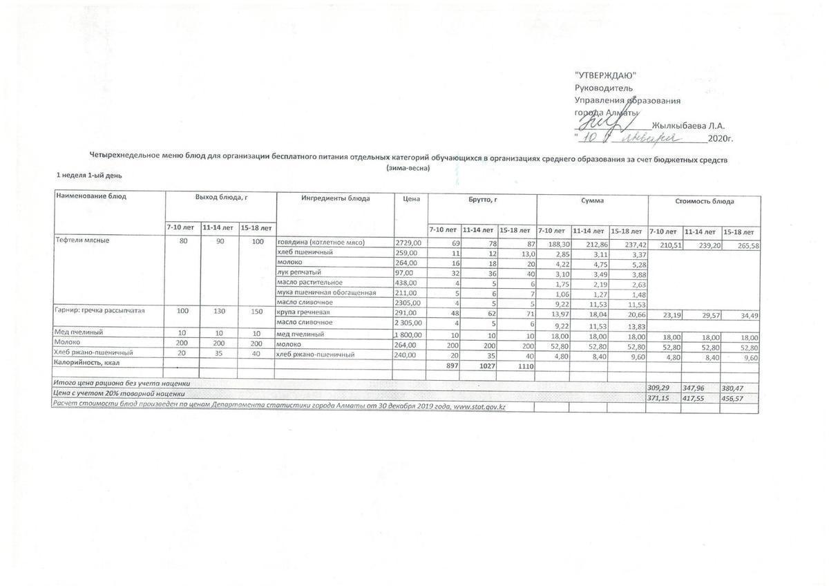 10 январь 2020 0 1 2 3 4 5 Меню блюд для организации бесплатного питания. 2020-2021 уч.год Осы беттің QR-коды:QR-код этой страницы: