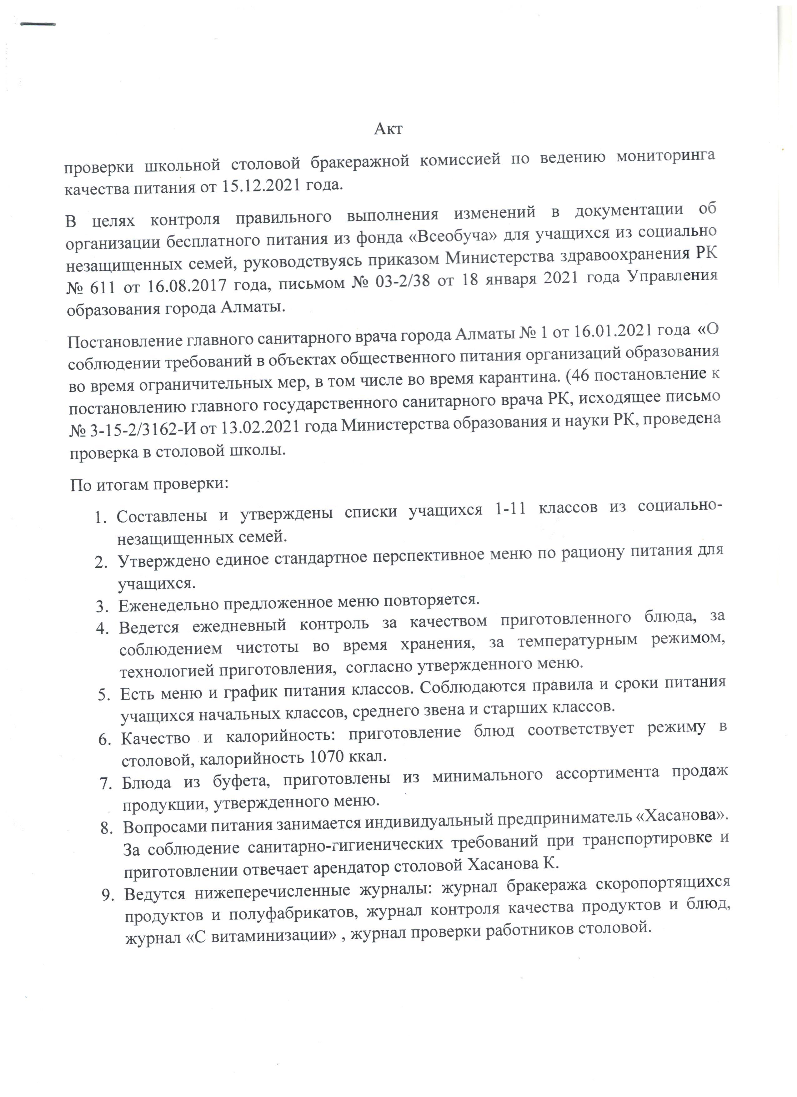 15 декабрь 2021 0 1 2 3 4 5 Акт № 7 проверки школьной столовой от 15.12.2021 г. Осы беттің QR-коды:QR-код этой страницы: