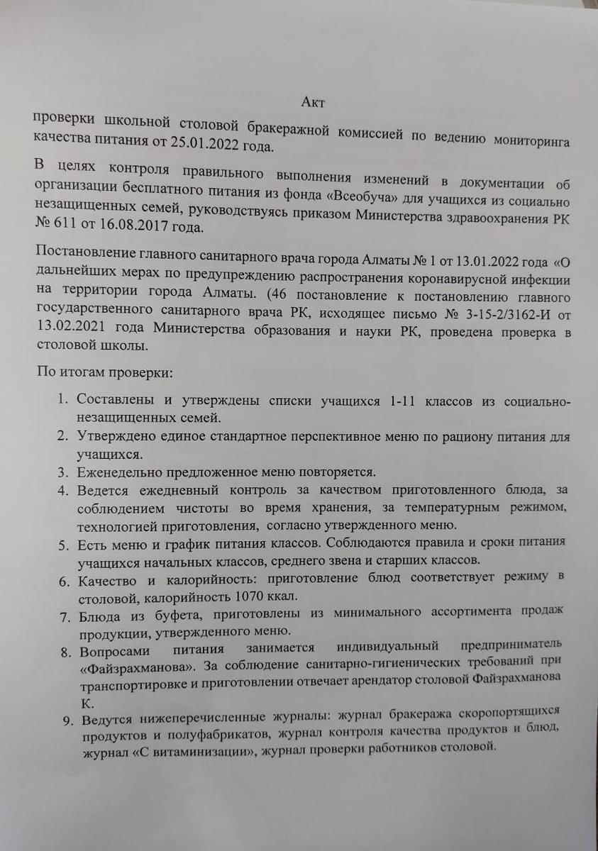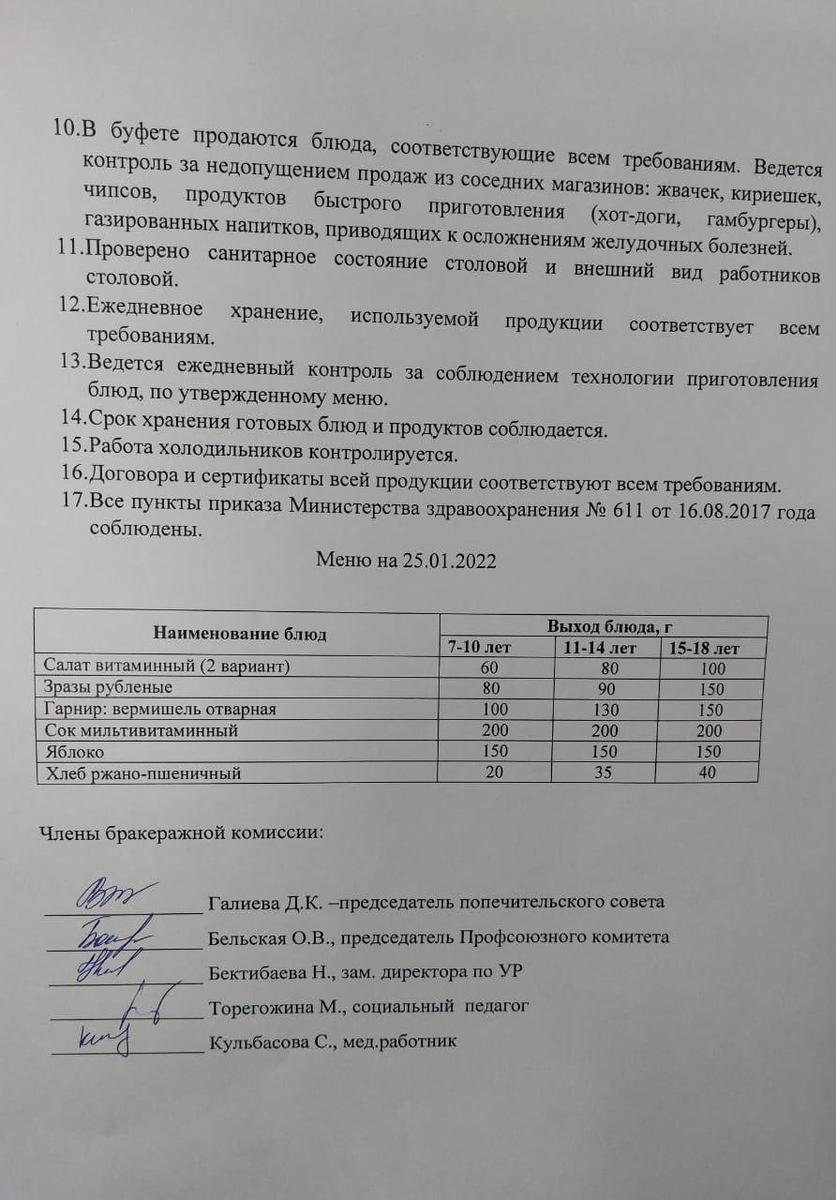 25 январь 2022 0 1 2 3 4 5 Акт №9 проверки школьной столовой от 25.01.2022г. Осы беттің QR-коды:QR-код этой страницы: