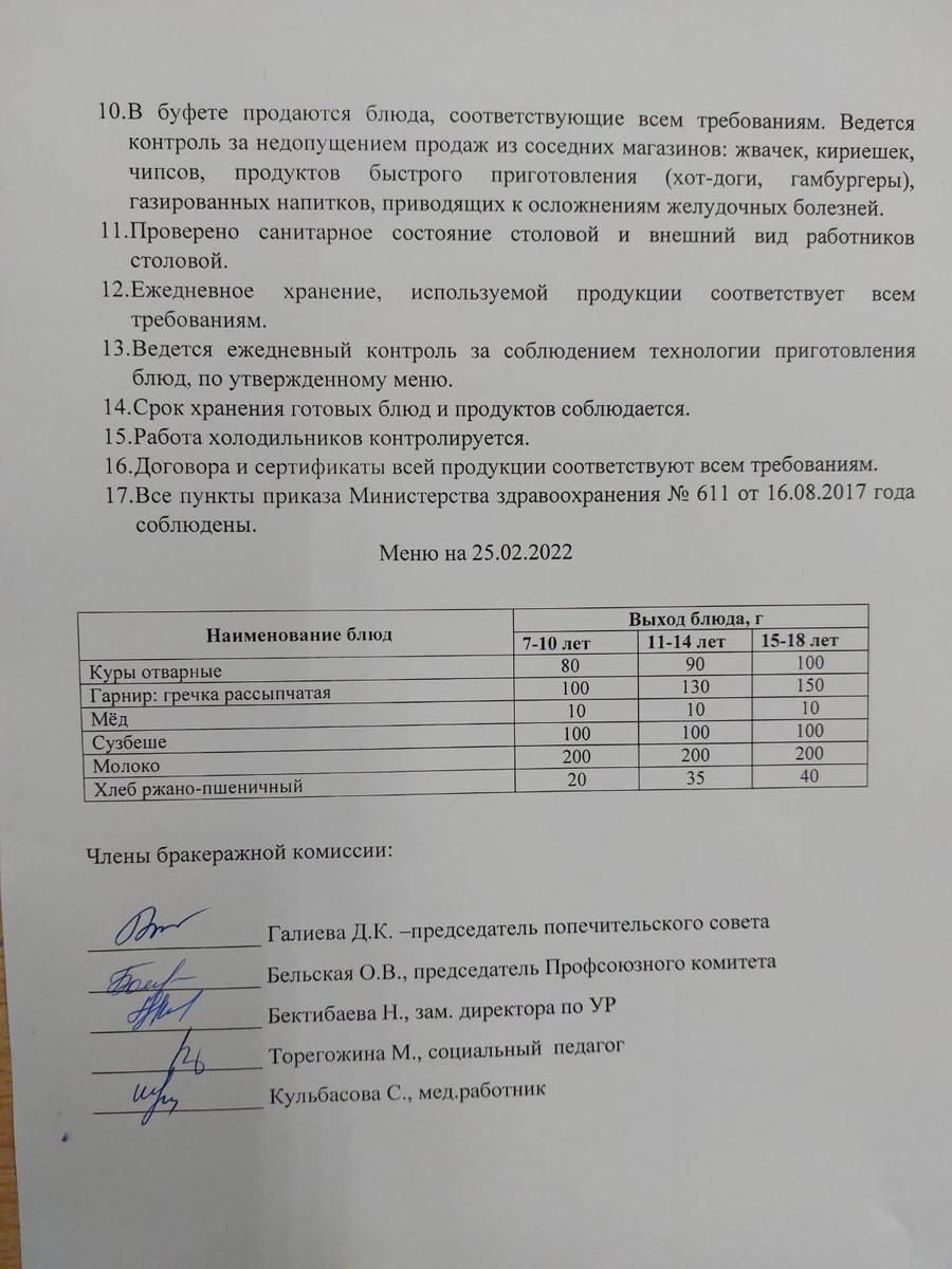 25 февраль 2022 0 1 2 3 4 5 Акт №11 проверки школьной столовой от 25.02.2022г. Осы беттің QR-коды:QR-код этой страницы:
