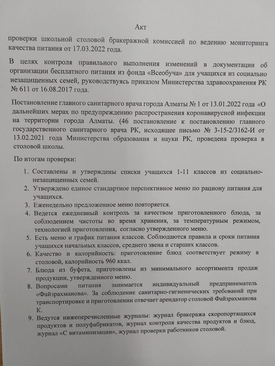17 март 2022 0 1 2 3 4 5 Акт №13 проверки школьной столовой от 17.03.2022 г. Осы беттің QR-коды:QR-код этой страницы: