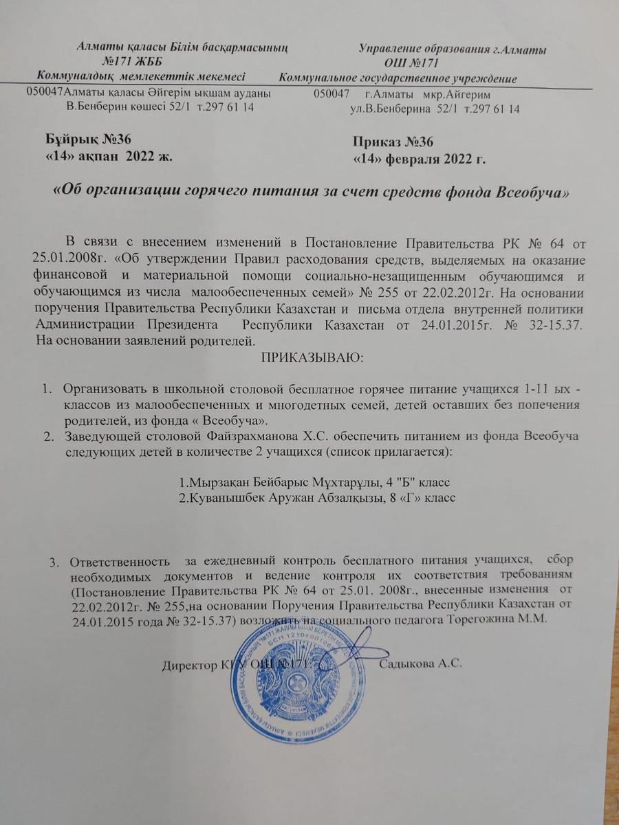 14 февраль 2022 0 1 2 3 4 5 Приказ "Об организации горяч.питания за счёт средств фонда Всеобуча" Осы беттің QR-коды:QR-код этой страницы: