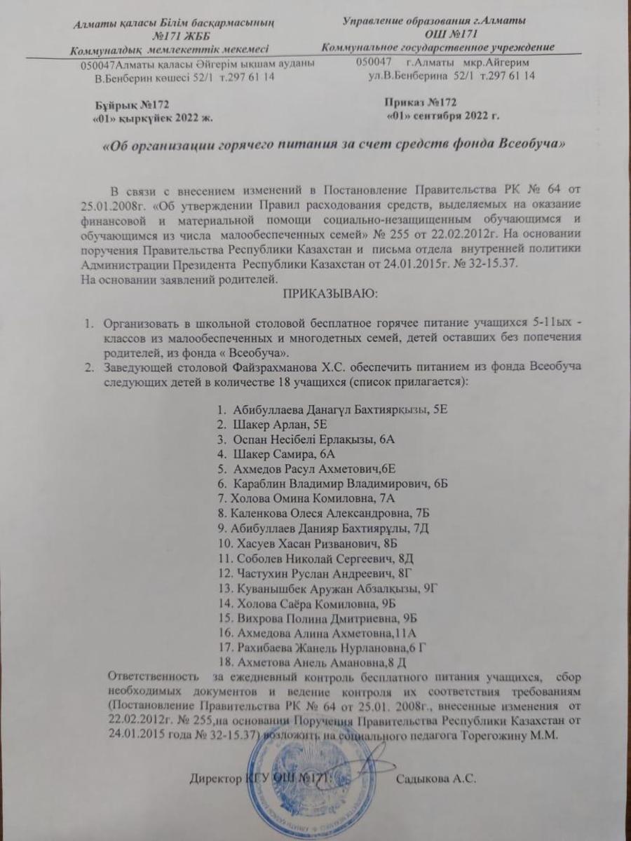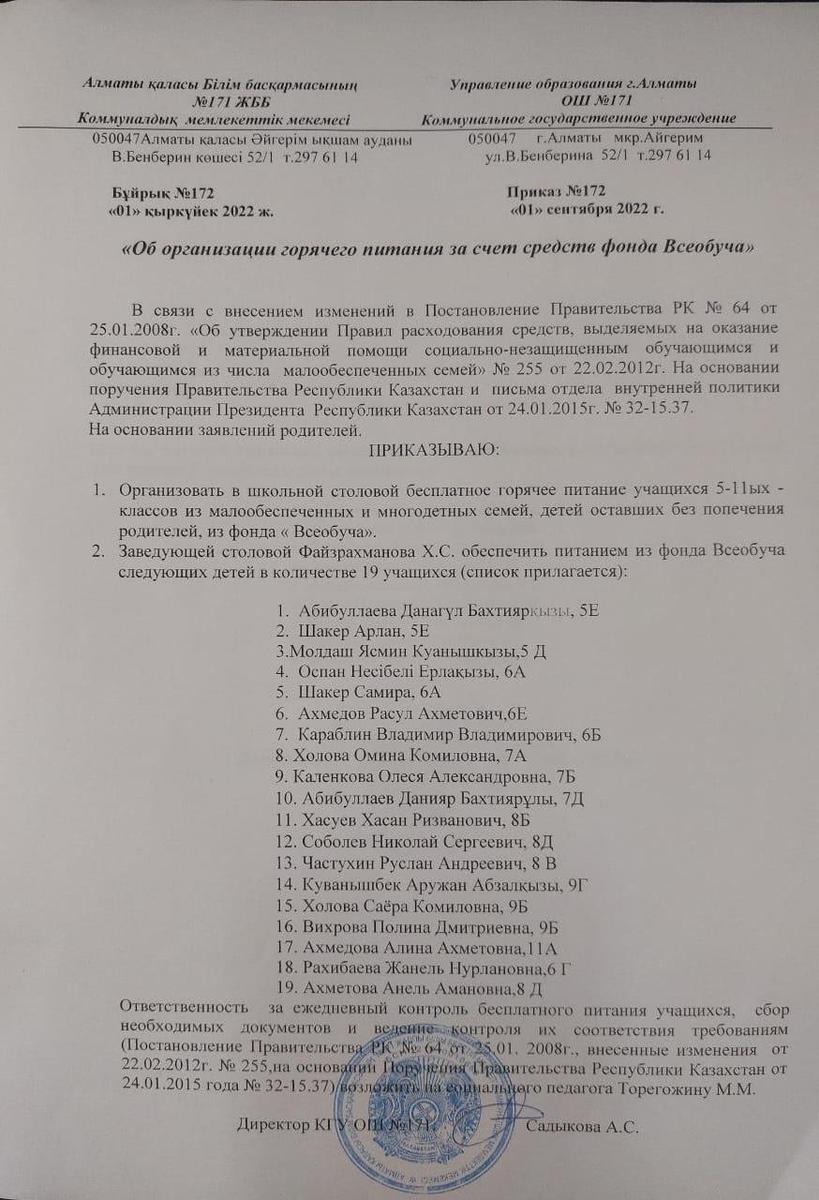 01 сентябрь 2022 0 1 2 3 4 5 Приказ "Об организации горячего питания за счет средств фонда Всеобуча" Осы беттің QR-коды:QR-код этой страницы: