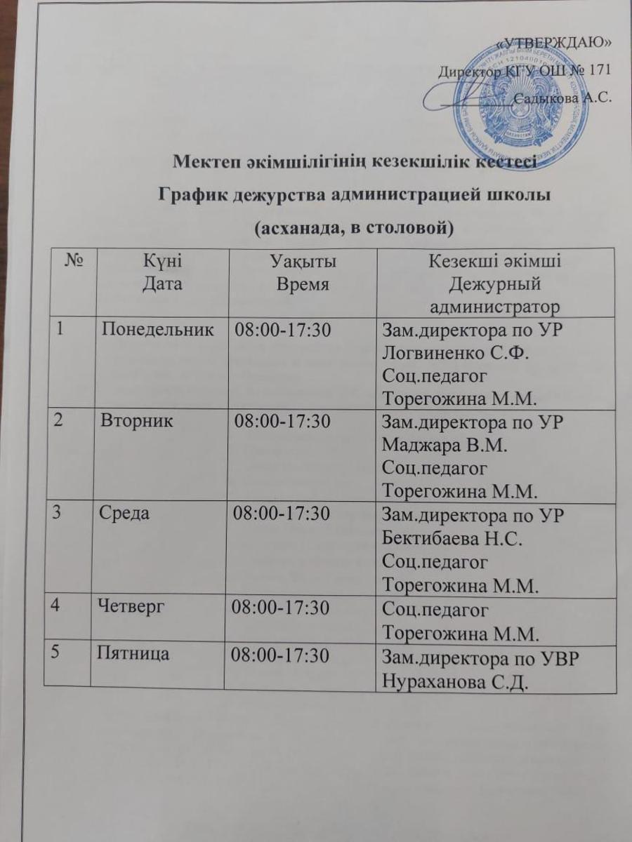 01 сентябрь 2022 0 1 2 3 4 5 График дежурства администрации школы в столовой Осы беттің QR-коды:QR-код этой страницы: