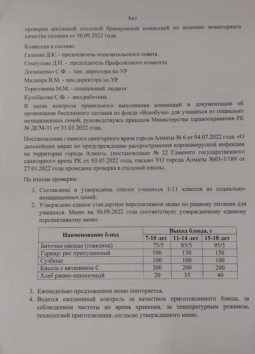30 сентябрь 2022 0 1 2 3 4 5 30.09.2022 ж. №2 мектеп асханасын тексеру актісі. Акт проверки школьной столовой №2 от 30.09.2022г. Осы беттің QR-коды:QR-код этой страницы: